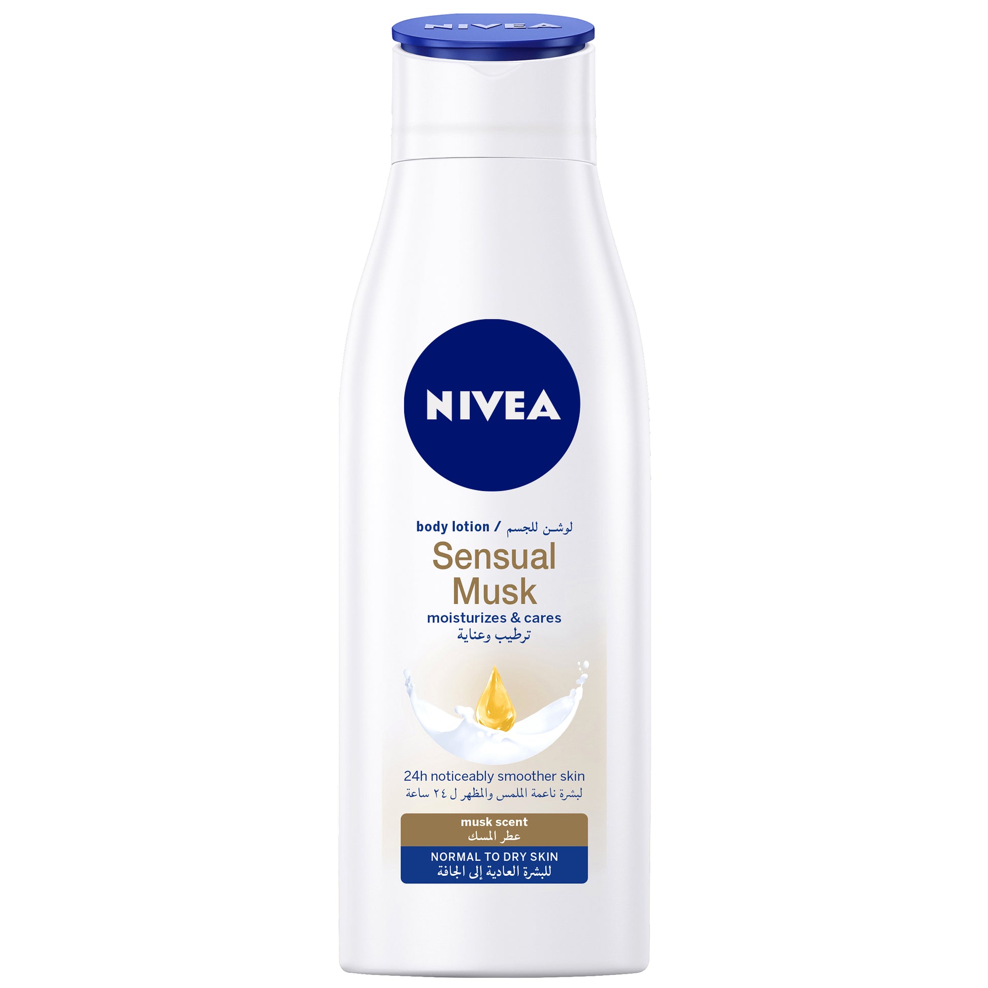 NIVEA Body Lotion Sensual Musk 250ml envelops your skin with a warm, long-lasting musk fragrance, providing 48-hour moisture care. Formulated with Hydra IQ technology, it leaves skin feeling soft, smooth, and comfortable, suitable for normal to dry skin types.